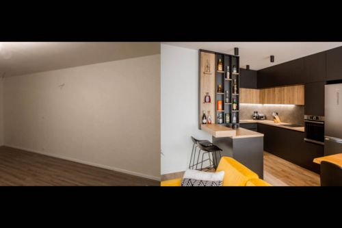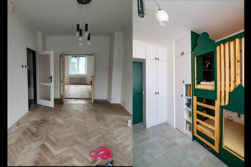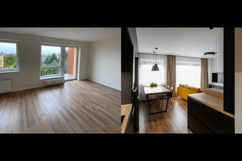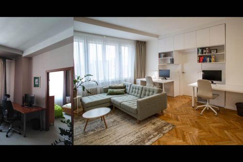 Konečným výstupem naší práce je zrealizovaný interiér nebo stavba. K tomuto cíli vede ale hodně dlouhá cesta, někdy trvá i několik let, u interiérů běžně několik měsíců. Cestu jsme pro Vás zkrátili a vytvořili ukázku fotografií interiéru v moment, kdy jsme do něj poprvé vstoupili a v moment, kdy jsme ho opouštěli.