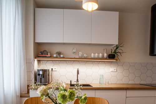 Projekt rekonstrukce bytu probíhal trochu za zvláštních podmínek. Klientka, nás oslovila ve chvíli, kdy byla v zahraničí při studiích práv. Osobně jsme se potkali až když byla realizace bytu hotová. Veškeré konzultace tak probíhaly na dálku pomocí video hovorů. Na vzdory tomu proběhla rekonstrukce nad očekávání hladce.