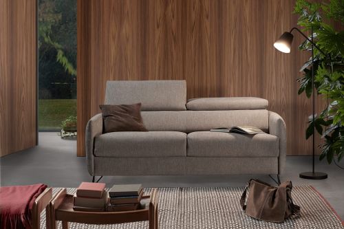 Victor is a small, sophisticated-looking sofabed with a headrest mechanism for a comfortable, functional space.