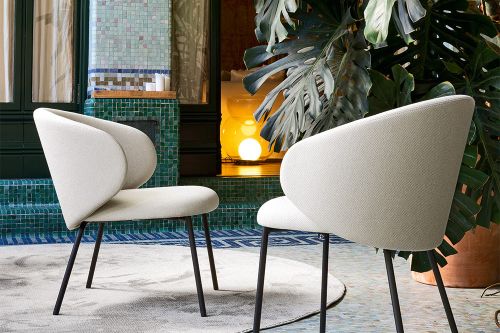 Seat shell with wide wraparound back and rounded seat available in 100% recycled Polypropylene or upholstered and fixed upholstered.