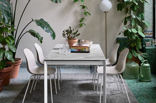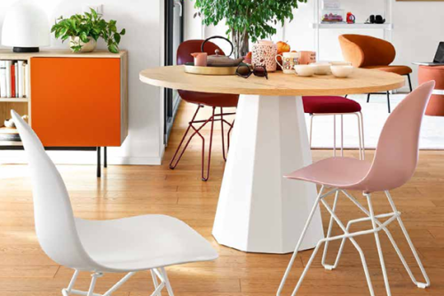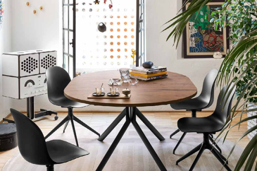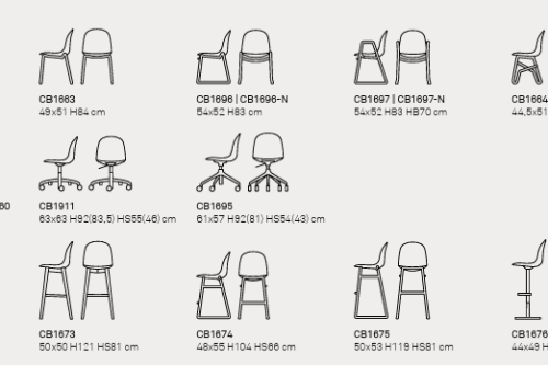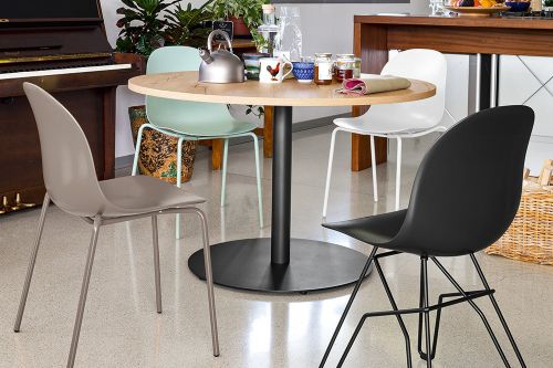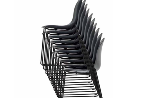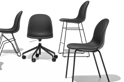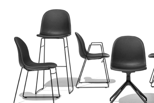 ACADEMY chair. The simple, sinuous design of the seat suits any environment and situation. 4-leg tubular metal base. More than a hundred possible combinations can be obtained between the base and the seat in this model, making it suitable for any aesthetic and functional need.